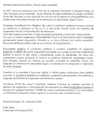 DOCUMENT: PCM cere ajutorul UDMR in problema autonomiei teritoriale pe criterii etnice in Covasna si Harghita!