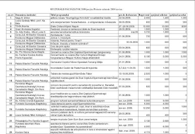 Lista completa a proiectelor finantate de la bugetul local al municipiului Sfantu Gheorghe o puteti gasi la: www.sepsiszentgyorgyinfo.ro/edit_file/uploads/files/2009/palyazatok/Eredmenyek_kulturalis_palyazatok_2009_I_Felev.pdf