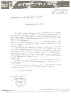 Ministerul Culturii si Cultelor sustine ca Benedek Levente nu a primit bani publici pentru a promova arta lui antiromaneasca!